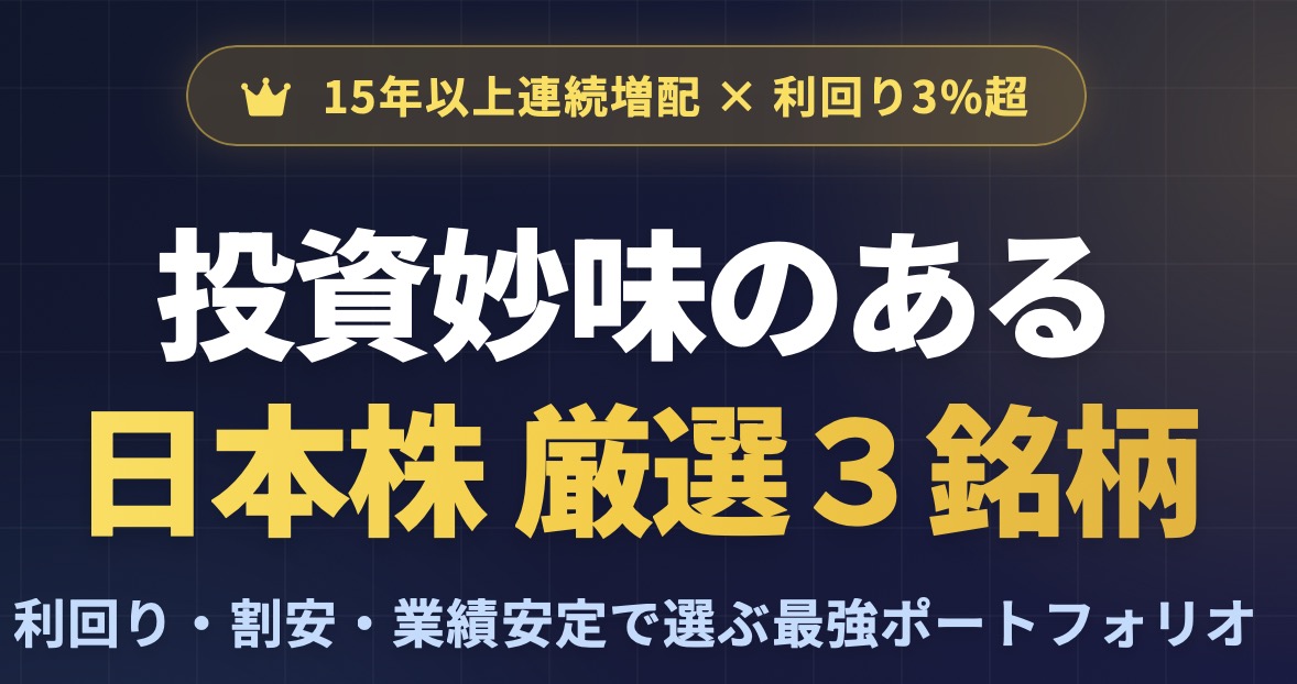 - 選定理由: こちらも26期連続増配という素晴らしい実績を持っています。リース事業だけでなく、集金代行サービスといった「チャリンチャリンと手数料が入ってくる」ストック型ビジネスを持っているため、不況時でも利益が底崩れしにくいのが強みです。PBR 0.7倍と依然として割安圏にあり、下値不安が少ない点も投資妙味があります。